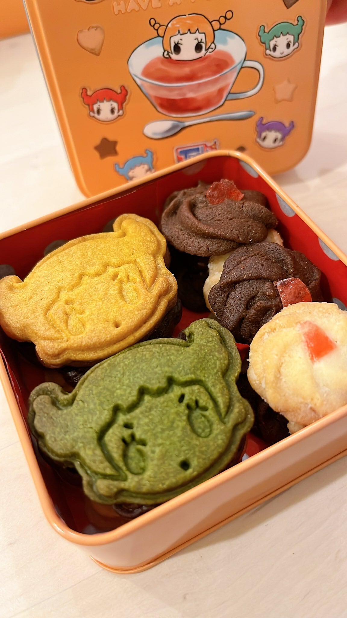 Tnakaチャンのとってもかわいいクッキー缶にTnakaチャンの形をしたクッキーが6個プラスレトロかわいいクッキーがぎっしり入っています。